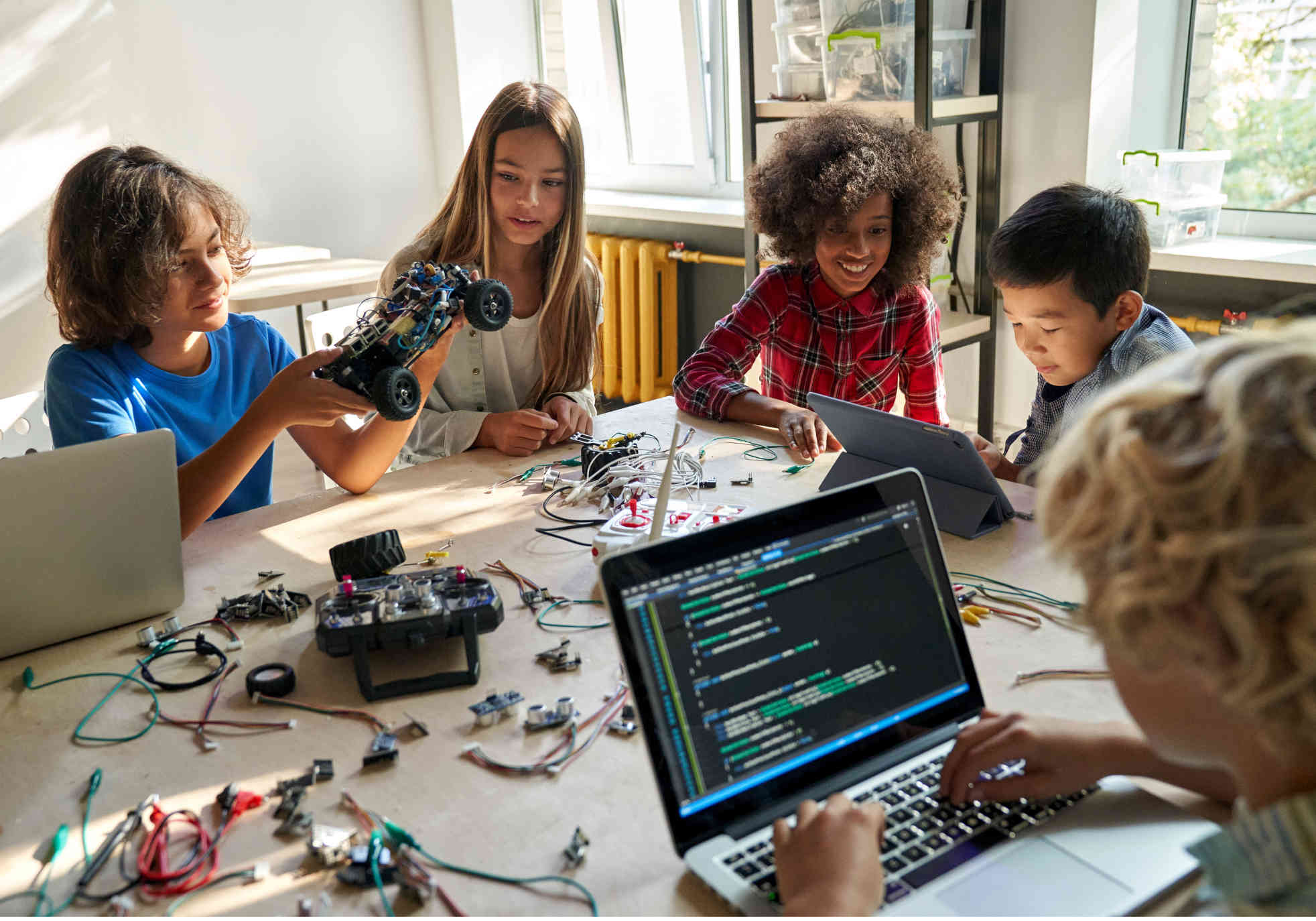 Manche Kinder sind schon mit 7 kleine Tüftler und steigen direkt in eine fortgeschrittene Gruppe ein. Andere sind mit 12 noch ganz neu – und starten entspannt bei den Anfängern.